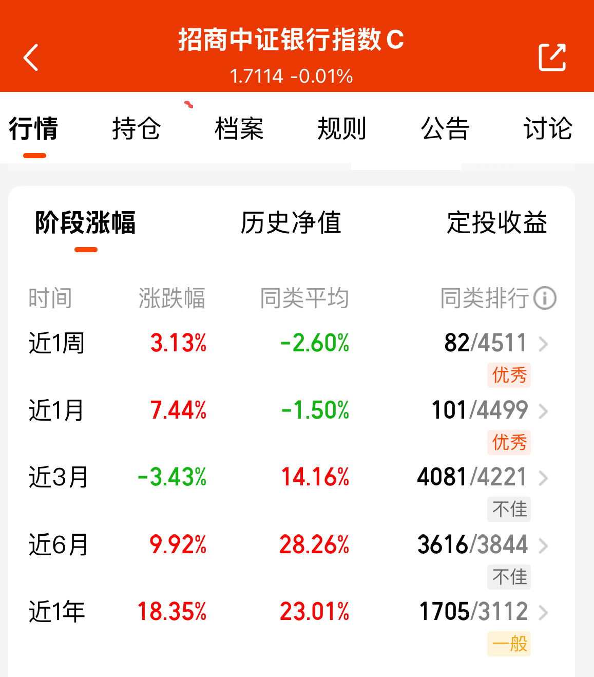 今天大科技起飞,银行股下跌,昨天日韩指数大跌,银行护盘的样子帅呆啦,我们追科技是增厚收益,但是保底收益还是需要像银行这样的好榜样,这是基石。$招商中证银行指数C(OTCFUND|014028)$今天小绿0.5%,问题不大,逢低小鸡吃米一样加仓位。