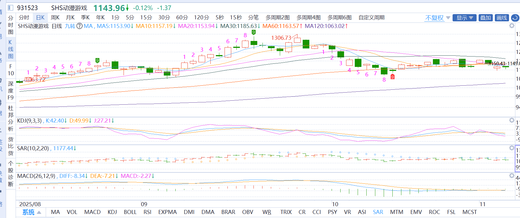 游戏板块:目前微微跌,技术面出现小十字星,有企稳意愿,不过方向暂时不明确,麦爸选择躺平等情绪回暖。