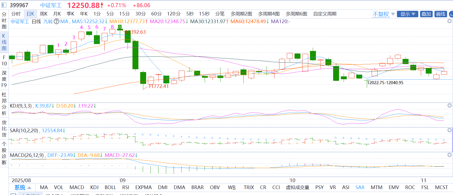 军工板块:技术面呈现“弱转强”态势,逐步摆脱前期弱势,有资金借大盘上涨突破整理区间开始布局。但仍缺乏明确利好驱动。麦爸延续“躺平”策略,选择不动。