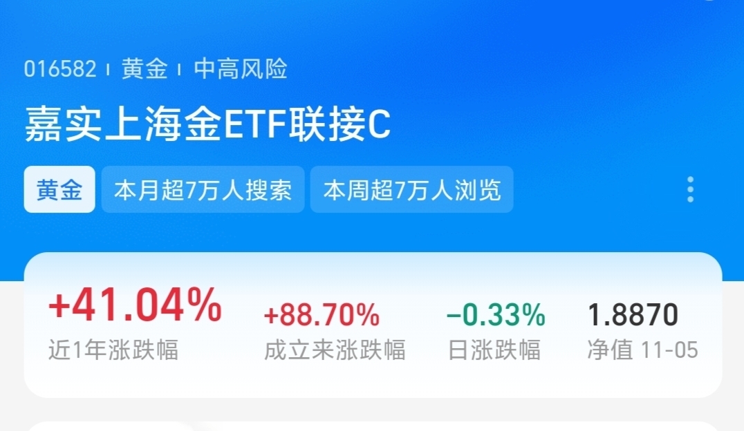 黄金这波总算稳住了!最近开始翻红回暖,止跌企稳的节奏太明显,现在央行还在悄悄囤黄金,加上降息预期撑着,黄金行情长期依然偏向乐观,我认为越波动越适合摊薄成本!所以特意找了几只不错的产品,相对来说,$嘉实上海金ETF发起联接C$ 就挺不错,近一年收益超40%,而且它的抗跌性也很强!这波调整比别家少跌不少,回撤控制超给力,行情晃悠的时候拿着特安心。现在评论区六楼还有红包可以领取,我认为震荡行情买黄金,就得选这种跌得少、跟得准的,不管是加配资产还是新手试水都合适。加上还有红包可以领取,还是很划算的!