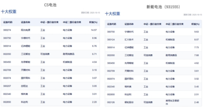 注:储能包括光伏设备、电网自动化、水电、其他储能设备等中证四级行业,固态电池含量以成分股热门概念板块中是否含固态电池为准,截至20251016