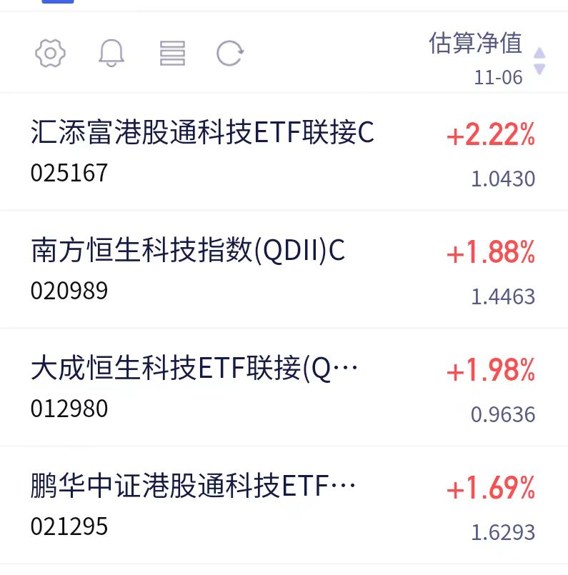 $鹏华中证港股通科技ETF发起式联接C(OTCFUND|021295)$目前预估涨幅1.69%