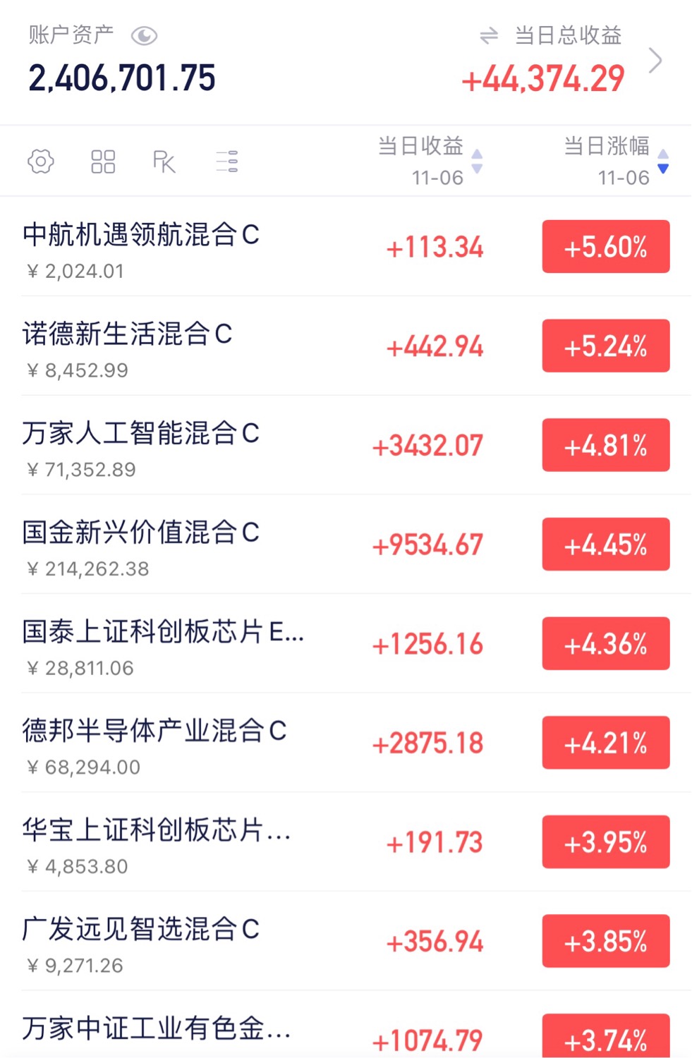 操作上,今天我上车的,是弘毅远方甄选混合C,相对于机器人指数进攻性更强