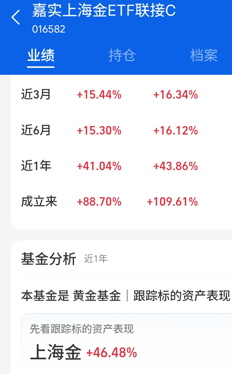 黄金要稳住向上冲啦,$嘉实上海金ETF发起联接C$近一年上涨41.01%,长期持