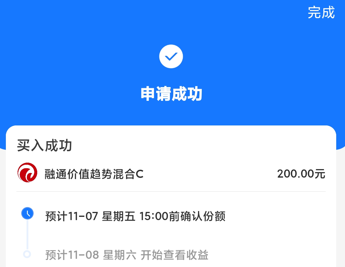 今天终于迎来科技修复,兜兜一直坚信就是市场就是科技的主线,既然是第一天修复,为了更稳妥今天继续定投200元的融通价值趋势混合C$融通价值趋势混合C$ 。