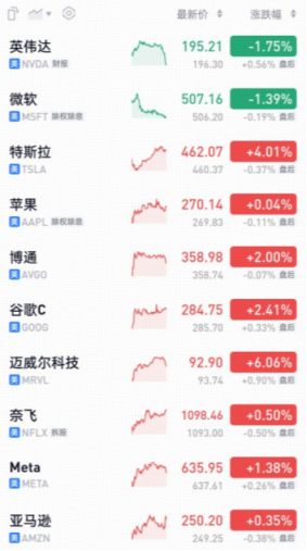 【重仓涨跌】昨日华宝纳斯达克精选前十大重仓股8涨2跌,美元兑人民币中间价↑0.02%。(重仓股涨跌情况仅供参考,不代表当前基金业绩表现,还请以每日更新的实际基金净值为准)