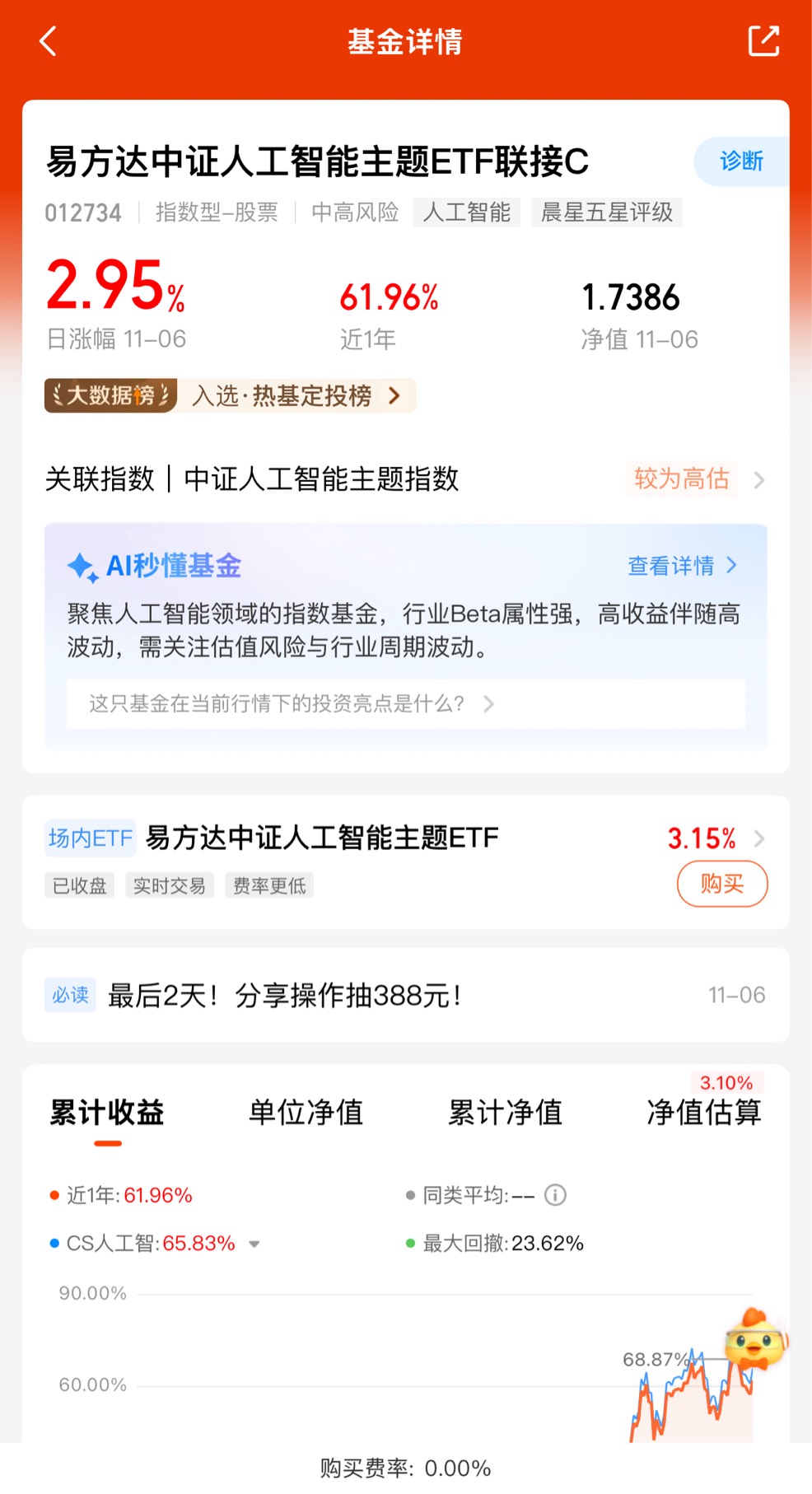 易方达中证人工智能主题联接C:今日大涨2.95%!