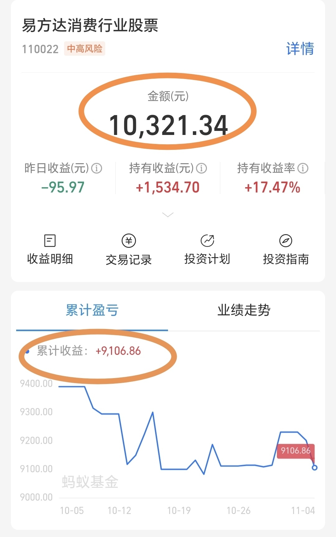 2018年,在经过沉淀和学习后,我又开始进入市场,分批建仓,到2020年,总计买入20多万,收益10万左右,这次我把收益不错的基金做了分批减仓,虽然没清仓,但我留下的资金相当于我的收益,所以从21年后的调整我是比较坦然的.....