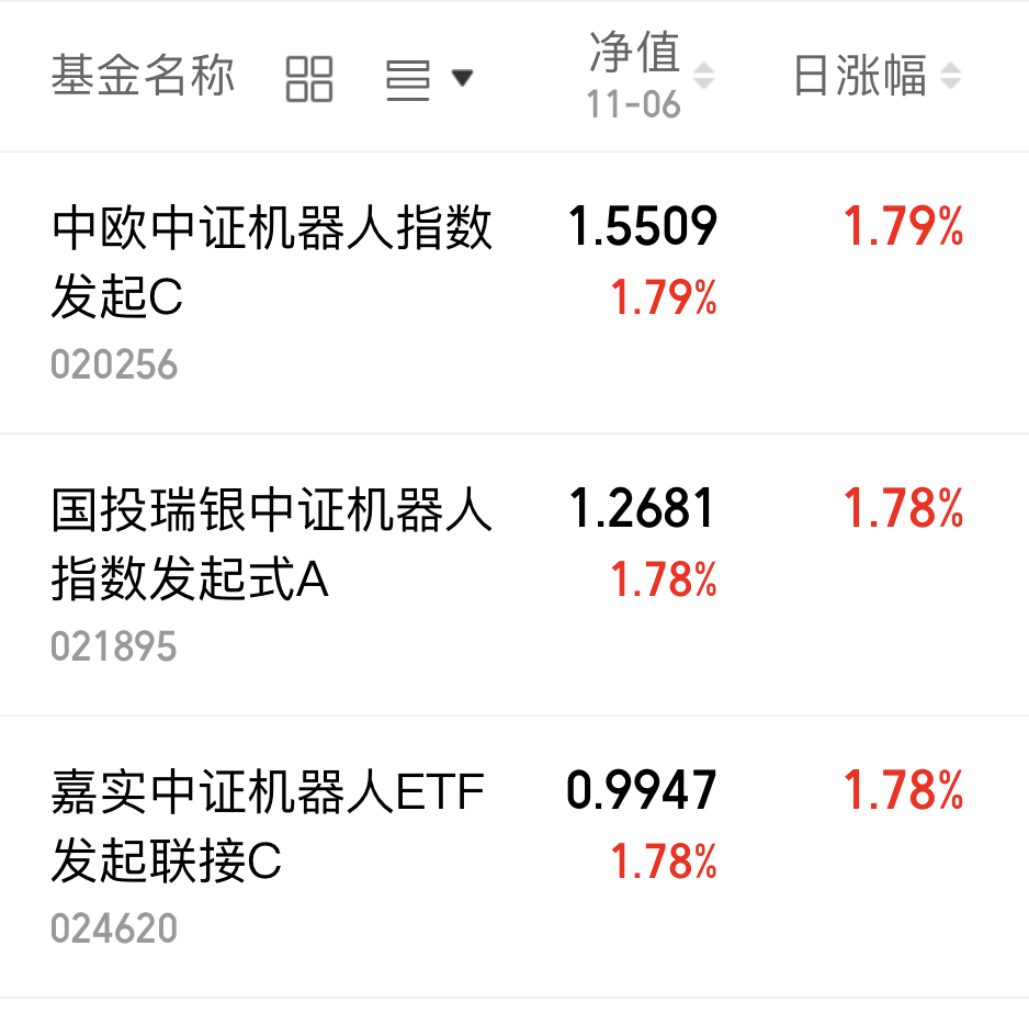 $嘉实中证机器人ETF发起联接C(OTCFUND|024620)$今晚上涨1.78%