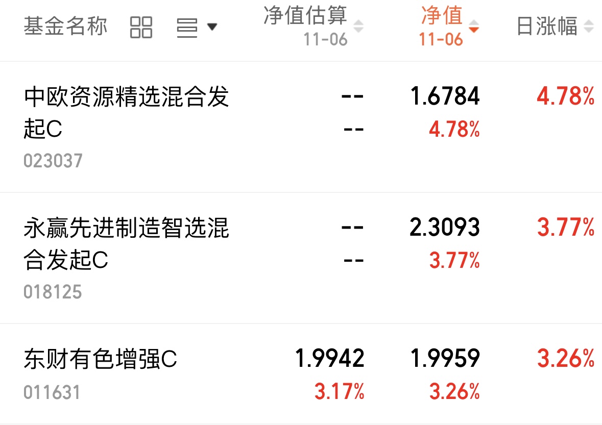 $东财有色增强C(OTCFUND|011631)$+3.26%,加入自选了