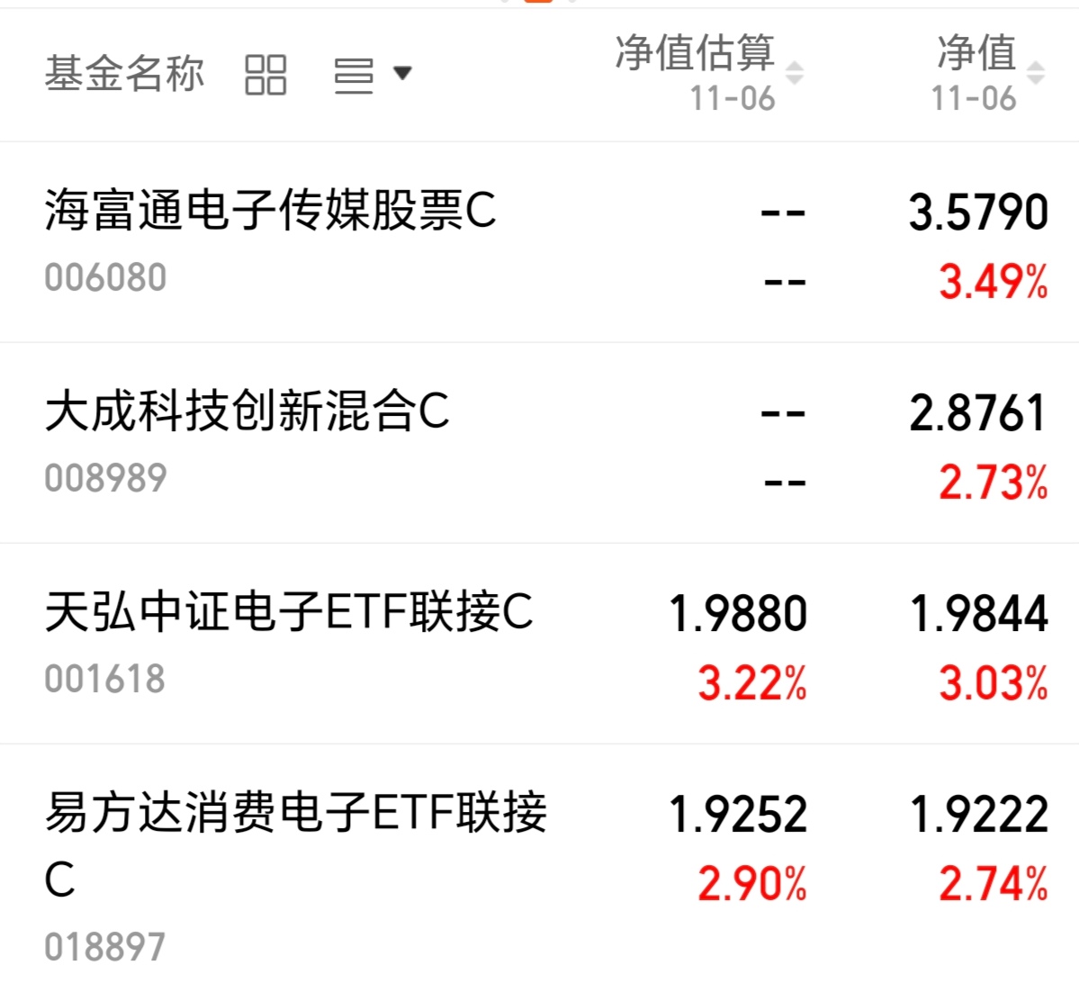 今日A股市场始终表现稳定出色,整体来看涨幅力度出色,个股也是涨多跌少,其中电子传媒更表现出色亮眼,一起来看今晚净值更新!