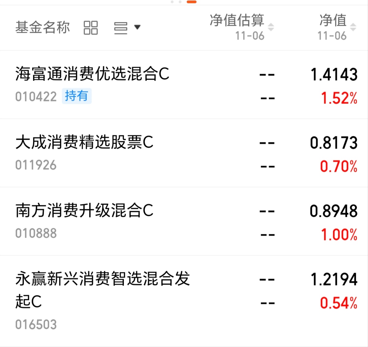 $大成消费精选股票C(OTCFUND|011926)$涨幅0.7%