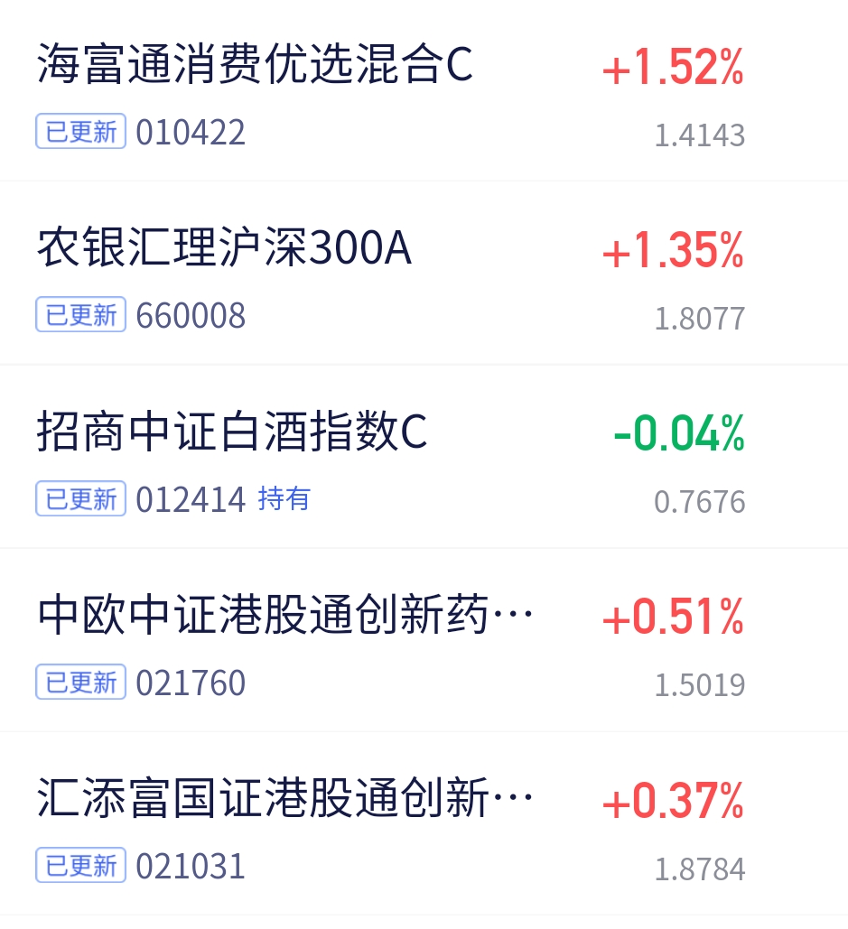 $海富通消费优选混合C$ 涨幅1.52%,还不错哦
