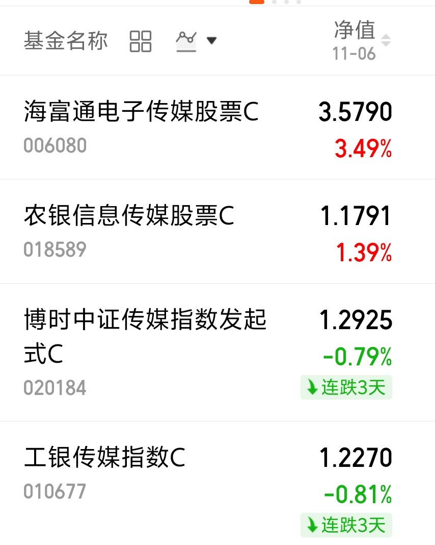 $海富通电子传媒股票C(OTCFUND|006080)$今天涨了3.49%