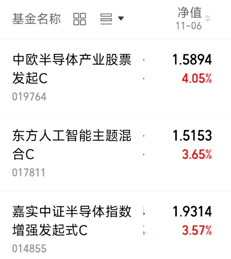 $中欧半导体产业股票发起C(OTCFUND|019764)$+4.05%,涨幅居前