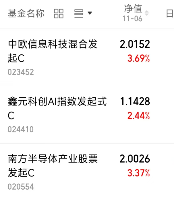 $中欧信息科技混合发起C(OTCFUND|023452)$+3.69%,涨幅居前
