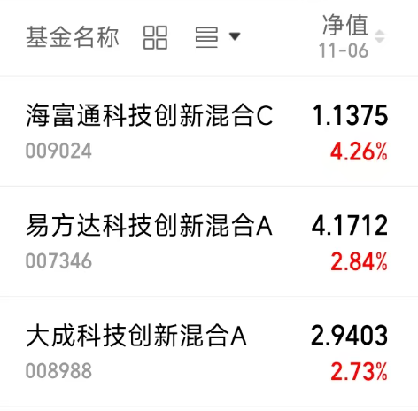 $海富通科技创新混合C(OTCFUND|009024)$+4.26%,涨幅领先