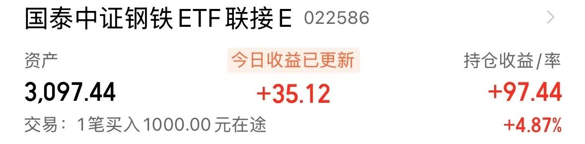 我布局的$国泰中证钢铁ETF联接E$ 今天也同步新高,累积收益接近5%,明天请继续给我惊喜