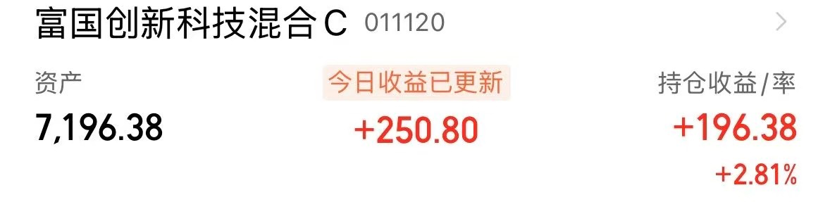 我布局的$富国创新科技混合C$ 涵盖人工智能、芯片等科技方向,今天大涨3.61%,没让我失望!躺平吃肉,我继续看好这只基的后市表现。