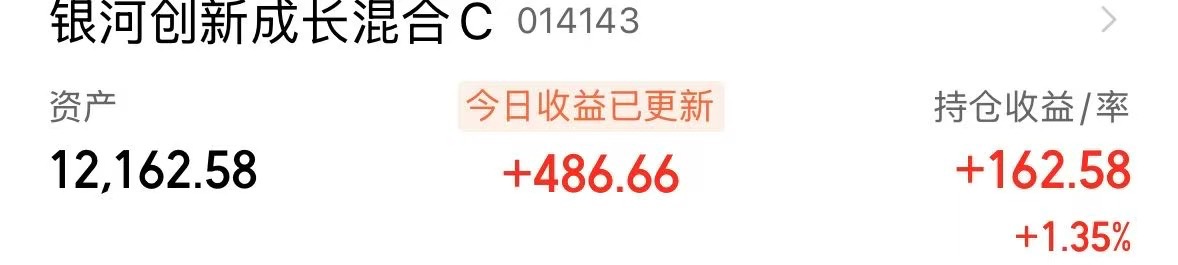 在人工智能的天量资本开支下,持续受益,存储芯片的景气度回升,并且有可能维持但Q4,我布局的$银河创新成长混合C$ ,今天上涨4.17%!算是给了我惊喜,幸好我坚持低位布局
