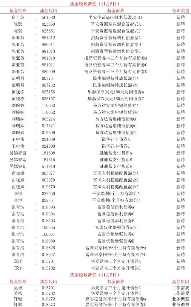 11月6日基金经理变更公告
