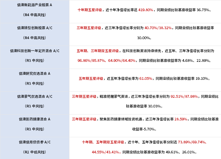 凭借卓越的业绩表现和稳健的风险控制能力,信达澳亚旗下共计有7只基金收获“五星”好评。