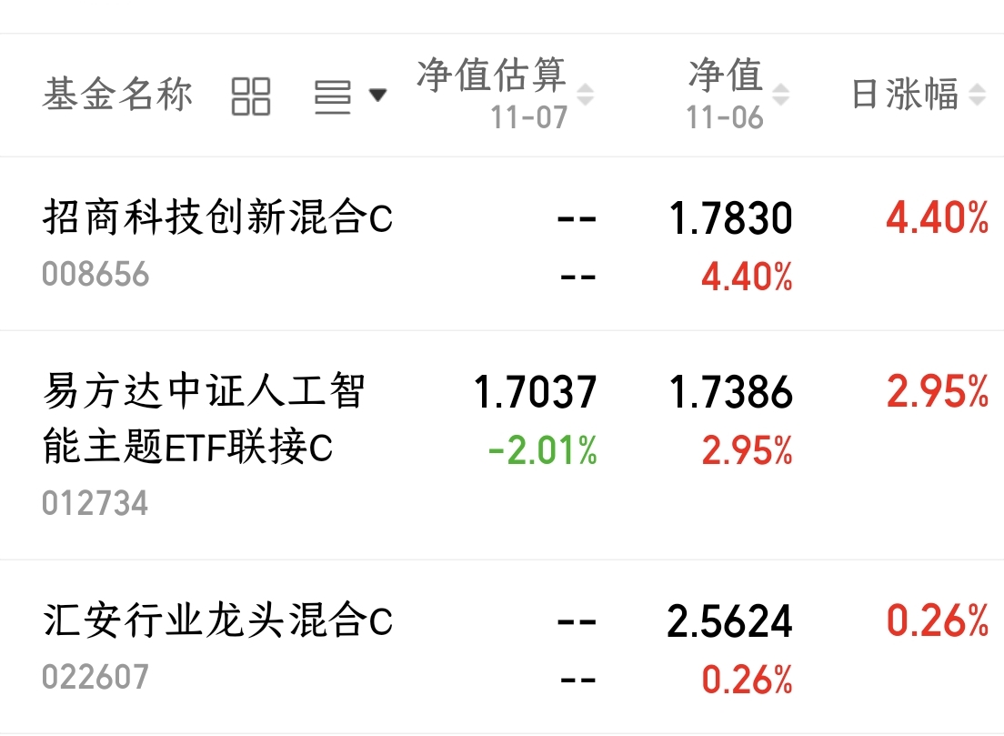 昨天股市高开高走,走出了独立行情,越来越好了。昨天科技板块涨幅不错,领涨全场,我们看一下热门科技基昨天净值情况。