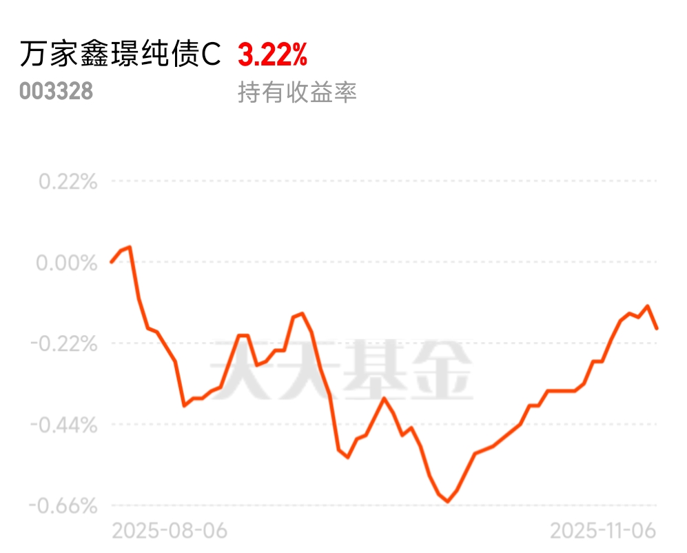 #11月基金投资策略# 长债收益渐入佳境!$万家鑫璟纯债C$ 近一个月开始稳步回升!此时是不错的配置机会!