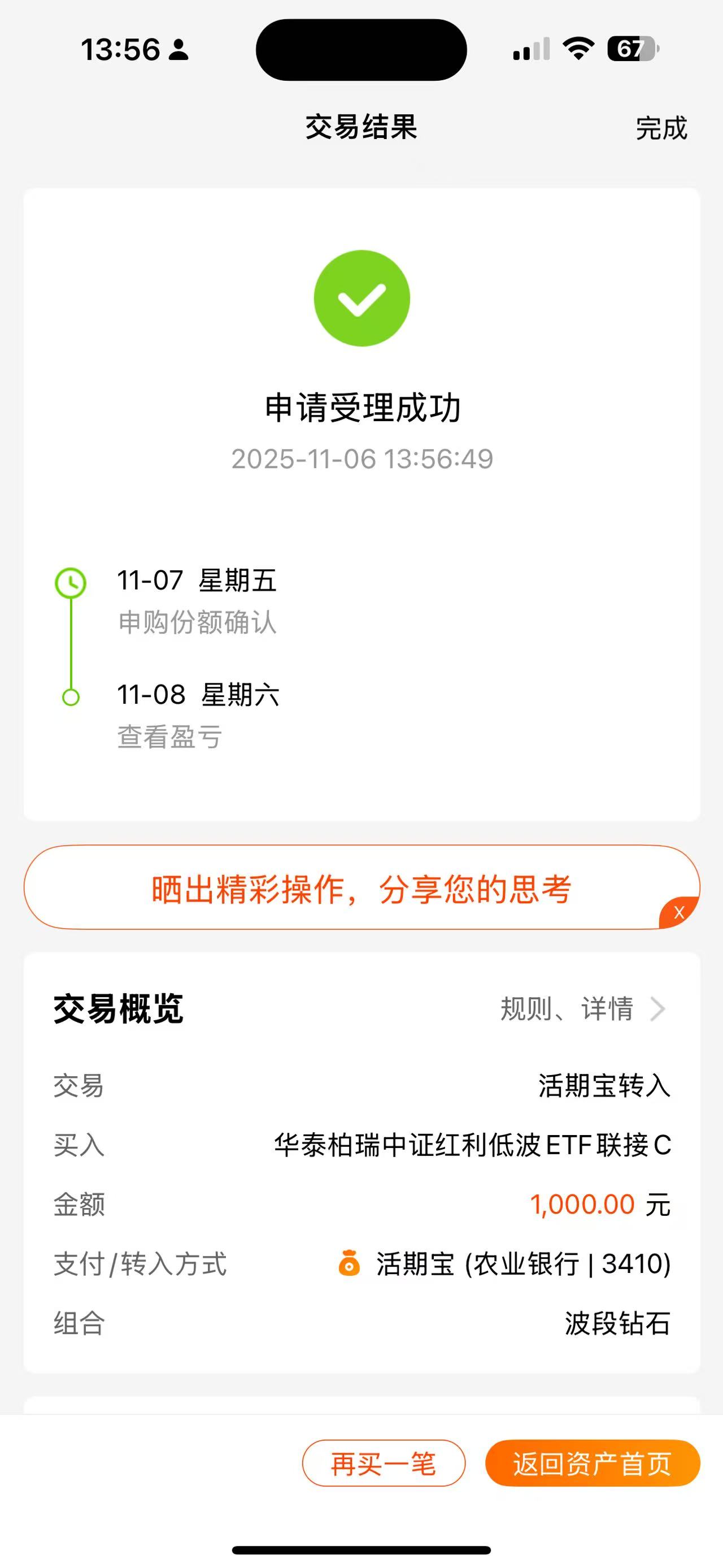 操作:顺势上车1000元$华泰柏瑞中证红利低波ETF联接C(OTCFUND|007467)$基金,今日红利低波指数震荡走强,日k线沿着5日均线继续向上攻,附图MACD的快慢线二次开口向上走。10月中旬以来,A股市场出现了震荡调整,红利低波成功的承接了这一次行情的高低切,目前技术面已经走出了头肩底形态,技术面上有望继续走强。当下A股已经开始回暖,在大环境良好的背景下,红利低波指数机会更明显了!