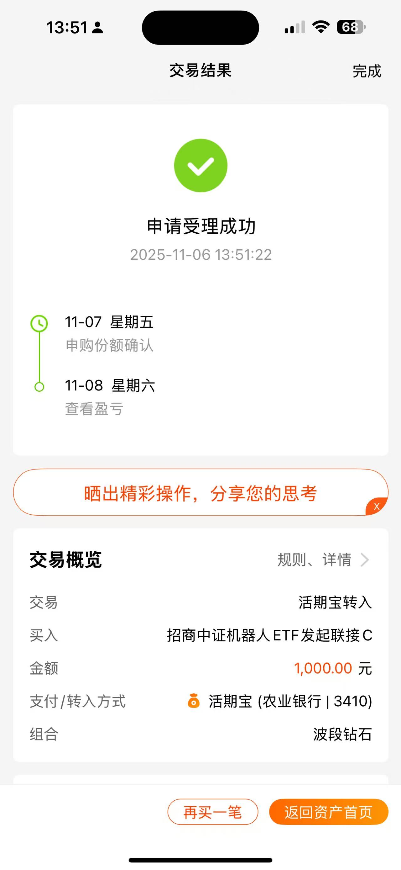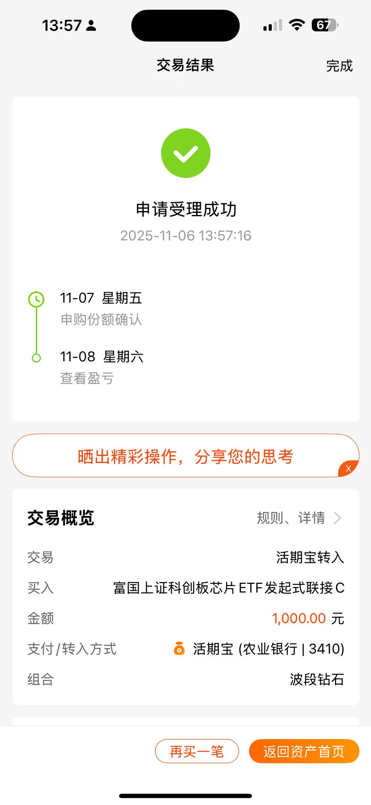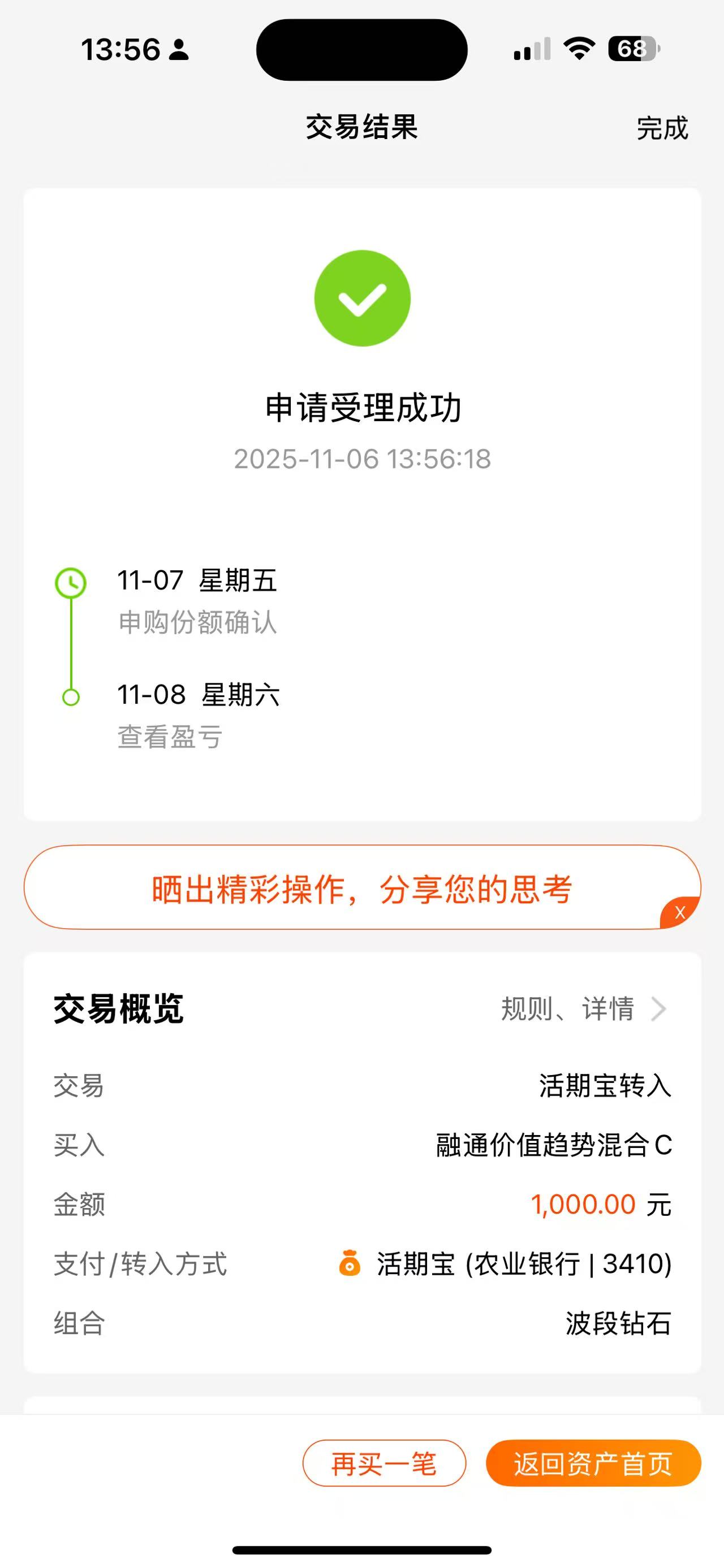 操作:顺势上车1000元$融通价值趋势混合C(OTCFUND|010647)$基金,这只基金聚焦科技成长赛道,前十大重仓股包含了CPO龙头新易盛、中际旭创及PCB企业胜宏科技,这些标的直接受益于AI算力基建扩张;此外,还布局了港股互联网龙头腾讯控股,储能龙头海博思创等企业,科技成长赛道综合布局,使得该基金整体收益更加稳健。尽管今年10月中旬以来A股市场出现了深度回调,但这只基金今年以来的收益依然高达81.29%,远远超过同类平均31.07%,这波超额收益太强了!除了赶上今年的科技牛之外,主要还得归功于基金经理李进的功劳,别看他的从业时间不长,但年化回报居然高达31.65%,这波收益我服气!