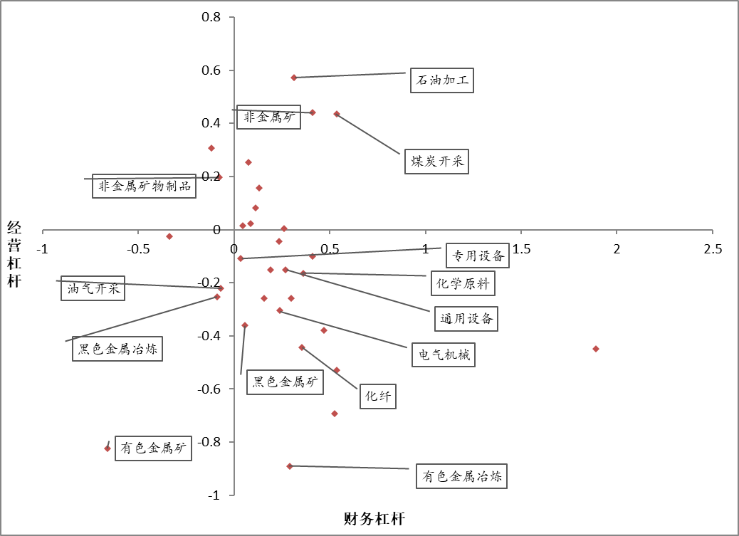 政策鼓励并不是配置传统产业的根本理由,市场表现才是。我们从经营杠杆和财务杠杆两方面结合起来分析,将计算结果纳入四个象限,不同象限反映了这些产业不同的布局思路。