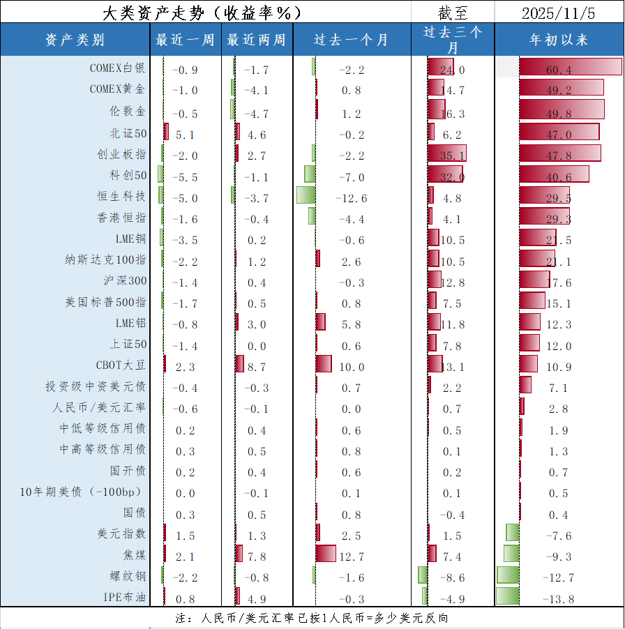 近期的市场表现是典型的新旧易位,“老登风采”再现。权益周度观察中,电力设备、钢铁、煤炭、商贸零售、社会服务等涨幅超前,通信、电子、美容护理、国防军工跌幅较大。从大类资产看,科创50、恒生科技等走势也不容乐观。疲弱的市场中,业绩与情绪、债券与权益、成长与价值、真成长与伪成长、黄金与美元的易位是暂时的,还是拉开了新的序幕?从策略风格来看,持续几年的哑铃策略有从两头向中间聚集的倾向,这是不是很多投资者期待的“中坚企业”的价值回归?毕竟,哑铃策略类似于没有中场的足球战术,得中场者得天下是基本的共识,足球如此,投资亦应该如此。