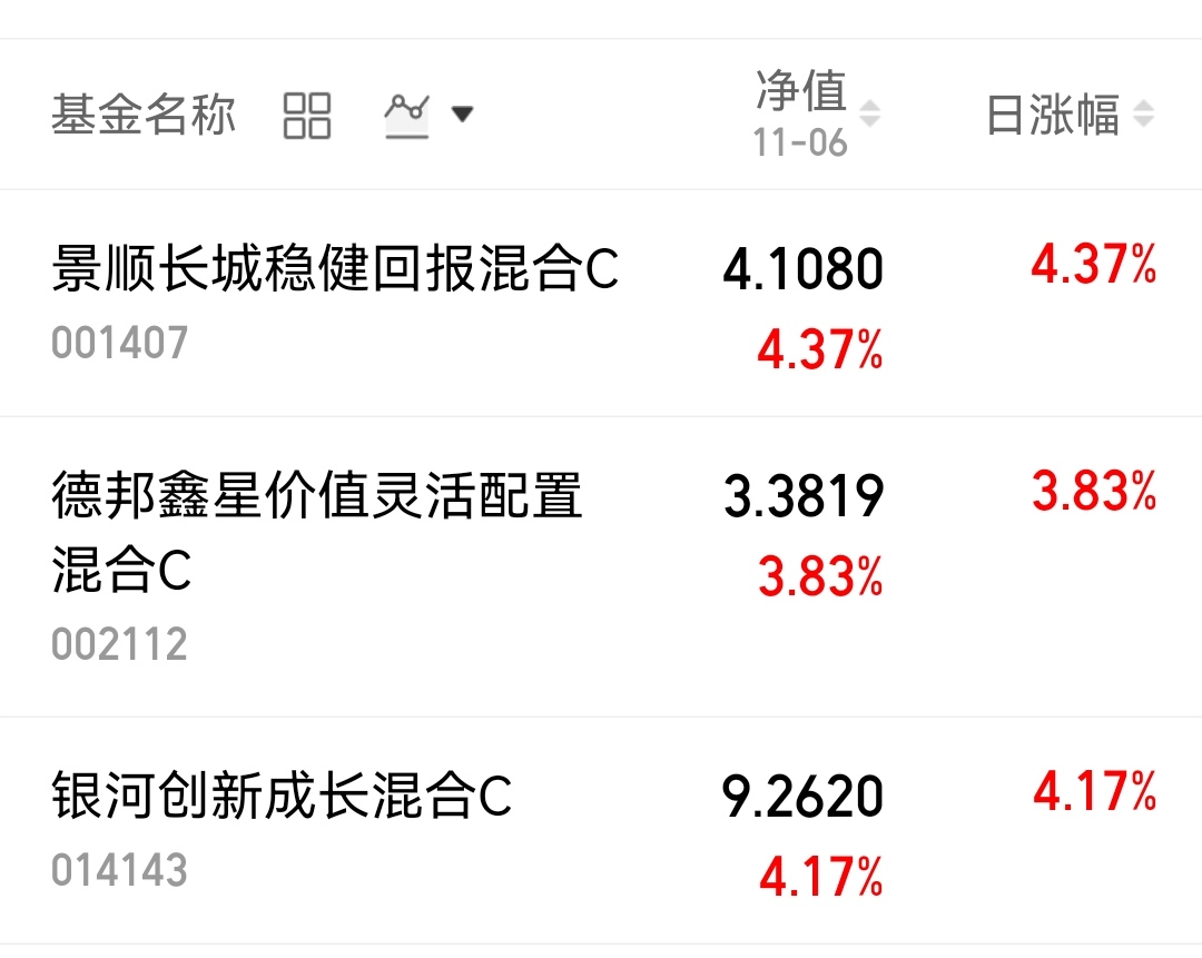 $景顺长城稳健回报混合C(OTCFUND|001407)$昨日大涨4.37%,反弹力度强,不愧为主动管理的基金,获取超额收益显著!
