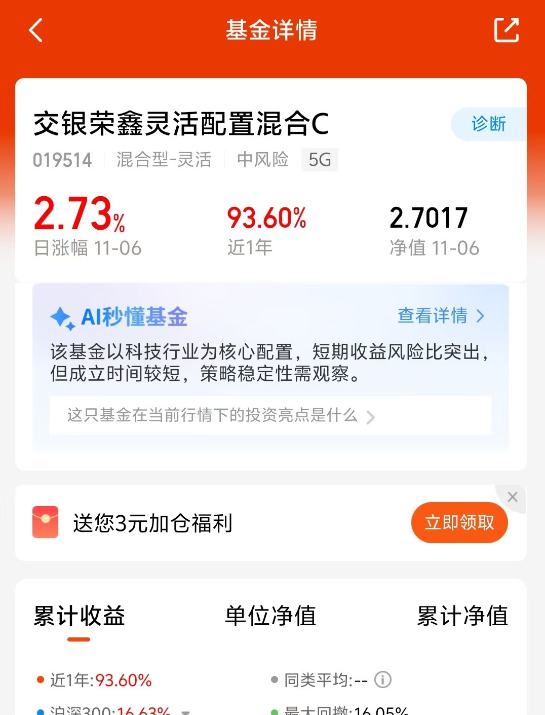 布局电子赛道,交银荣鑫混合C实力凸显。近1年收益93.6%,大幅领先同类平均与沪