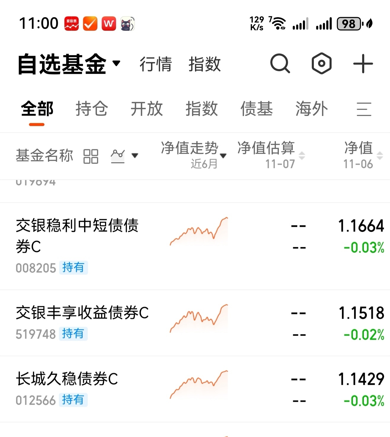在今天上午,观察目前持有的2个交银债基+某城久稳这三个债基的持有份额,在今天全部