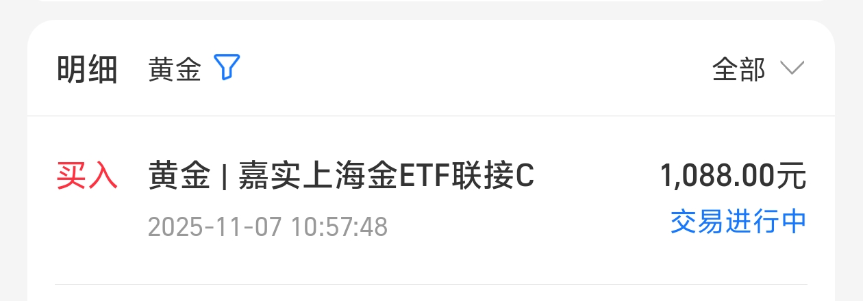 观察发现,当市场情绪转向谨慎时,黄金往往能展现其独特价值。嘉实上海金etf联接c近期走势平稳,显示出良好的防御能力。当前金价水平相比前期高点已有所回落,配置价值逐渐显现。我采取定期投入的方式,避免因短期波动影响判断。低成本持有的优势让长期规划更可持续。在复杂多变的市场环境中,这种稳健的投资方式让人更觉安心。