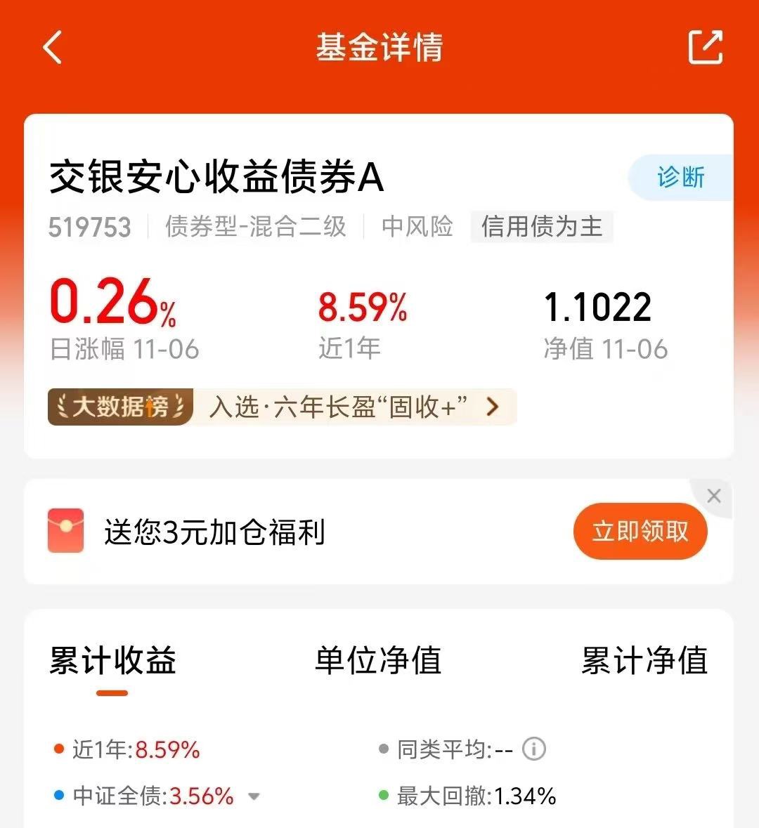 信用债市场的稳定表现,让聚焦该领域的“固收+”基金成热门。交银安心收益A作为中风