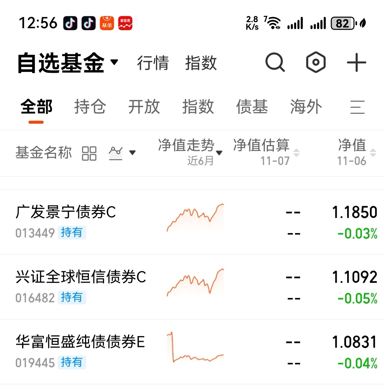 还有在昨天1晚上的时候,观察目前持有某富恒胜、某证全球恒信,这两个债券基金,在昨天表现也是跌的有点多的。