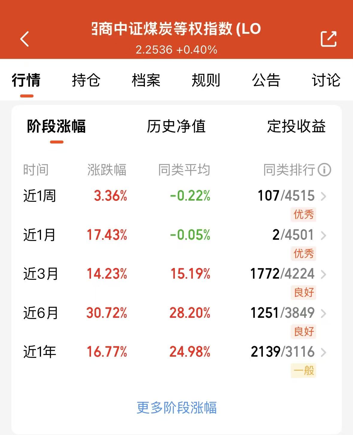 这两天追科技热点特别心累,刚去了新能源又赚到半导体,后面是存储芯片又是光伏,就两个字累挺。煤炭都是红的稳啊,$招商中证煤炭等权指数(LOF)C(OTCFUND|013596)$昨天涨0.4%小红,今天估值小红,上午涨了1%了,近一月17.13%,这个表现就厉害了,10月买科技的赚钱效应并不好。煤炭这波,主要还是供需矛盾,需求端火力全开,供给端却卡脖子,再加上政策反内卷的支撑,我打算继续稳稳拿住,让子弹再飞一会。中长期是没问题。