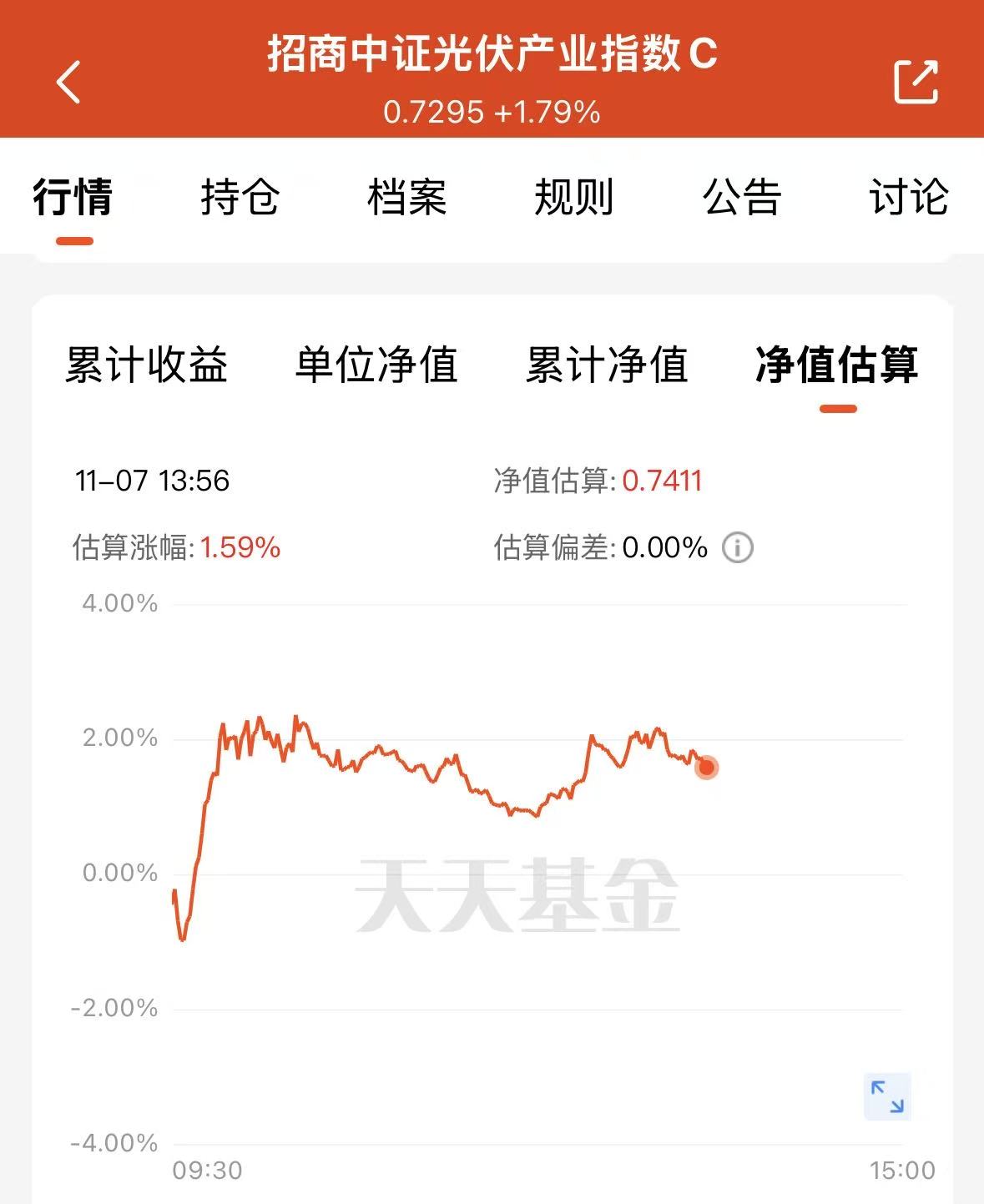 这段时间光伏行情很可以啊!$招商中证光伏产业指数C(OTCFUND|011967)$估值+1.59%,昨天涨1.79%,连续起飞啊!随着AI的扩张,数据中心对绿电需求暴增,光伏+储能的行情我觉得不会停。继续看好!耐心等待机会。