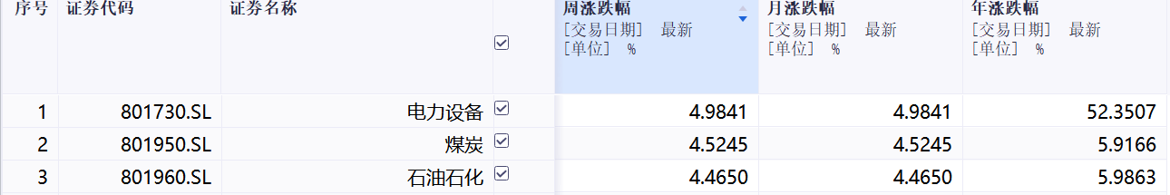 本周涨幅前三行业: