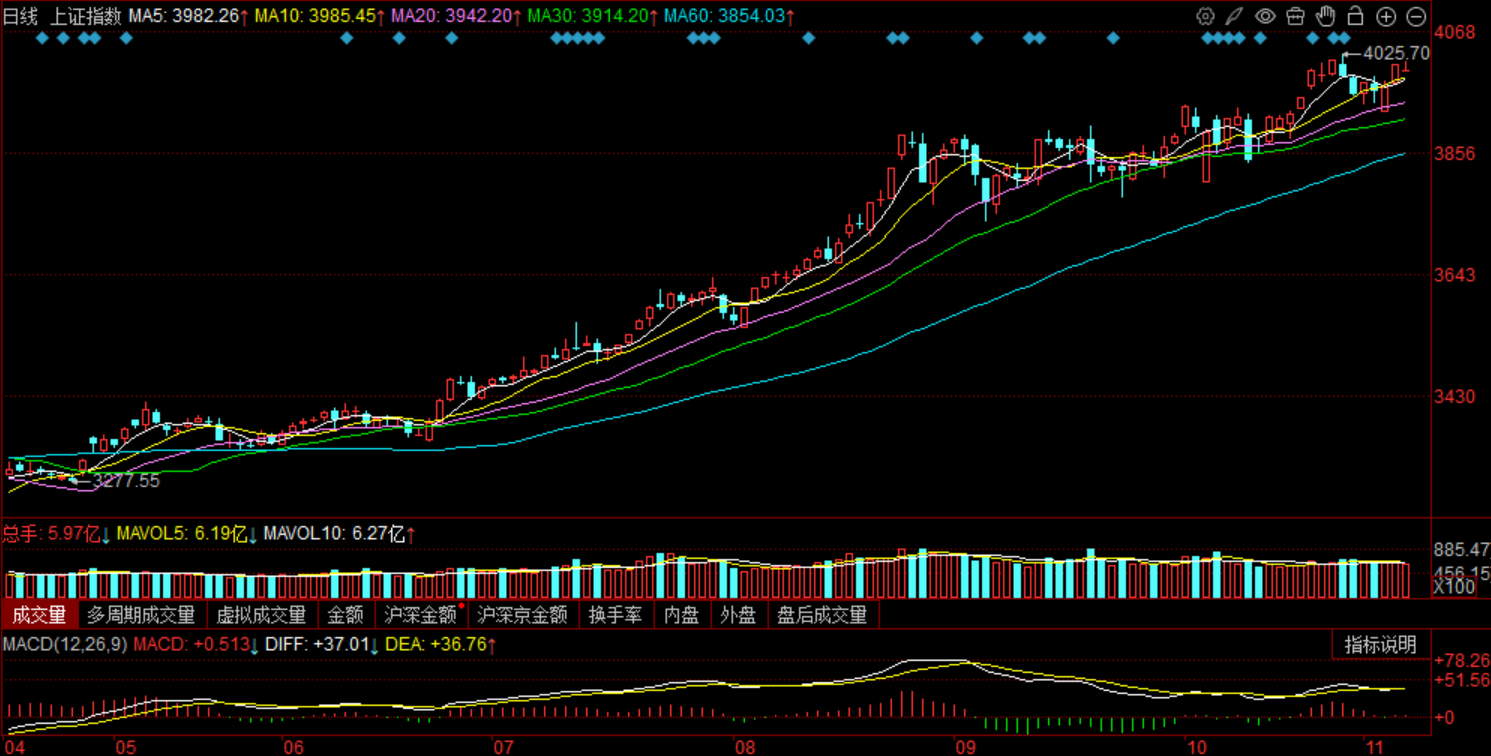 资金博弈:A股的交易量,还是老样子,2万亿上下左右。以前一万亿都是值得记录,但是现在沪指快4000,起码要2.5-3万亿,行情才能有滋有味。