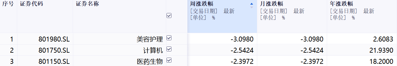 本周跌幅前三行业: