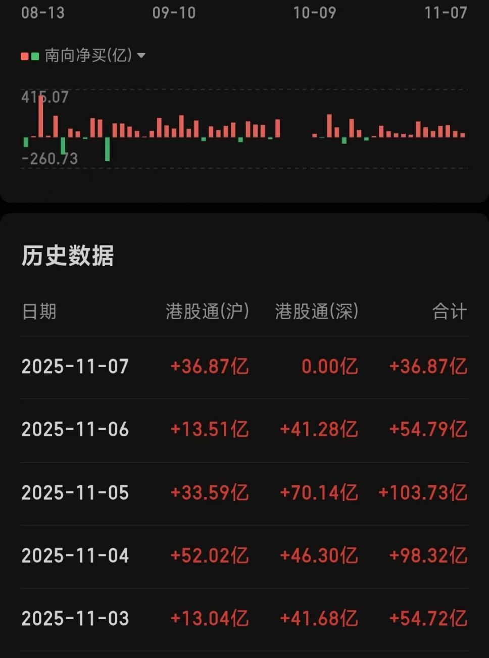 南下资金:本周交易净流入分别为52.72亿、98.32亿、103.73亿、54.79亿、36.87亿,总计净买入386.79亿港元。