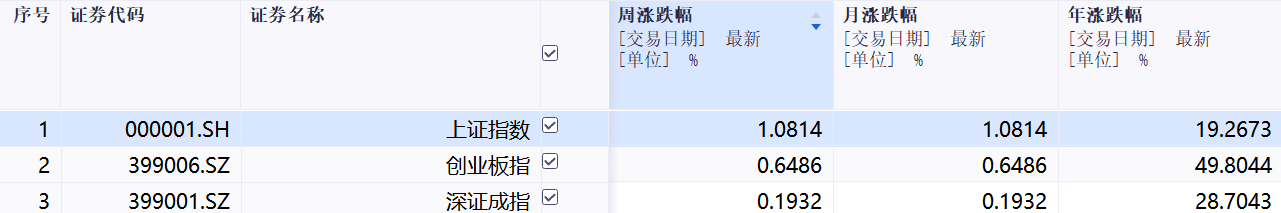 本周三大指数表现: