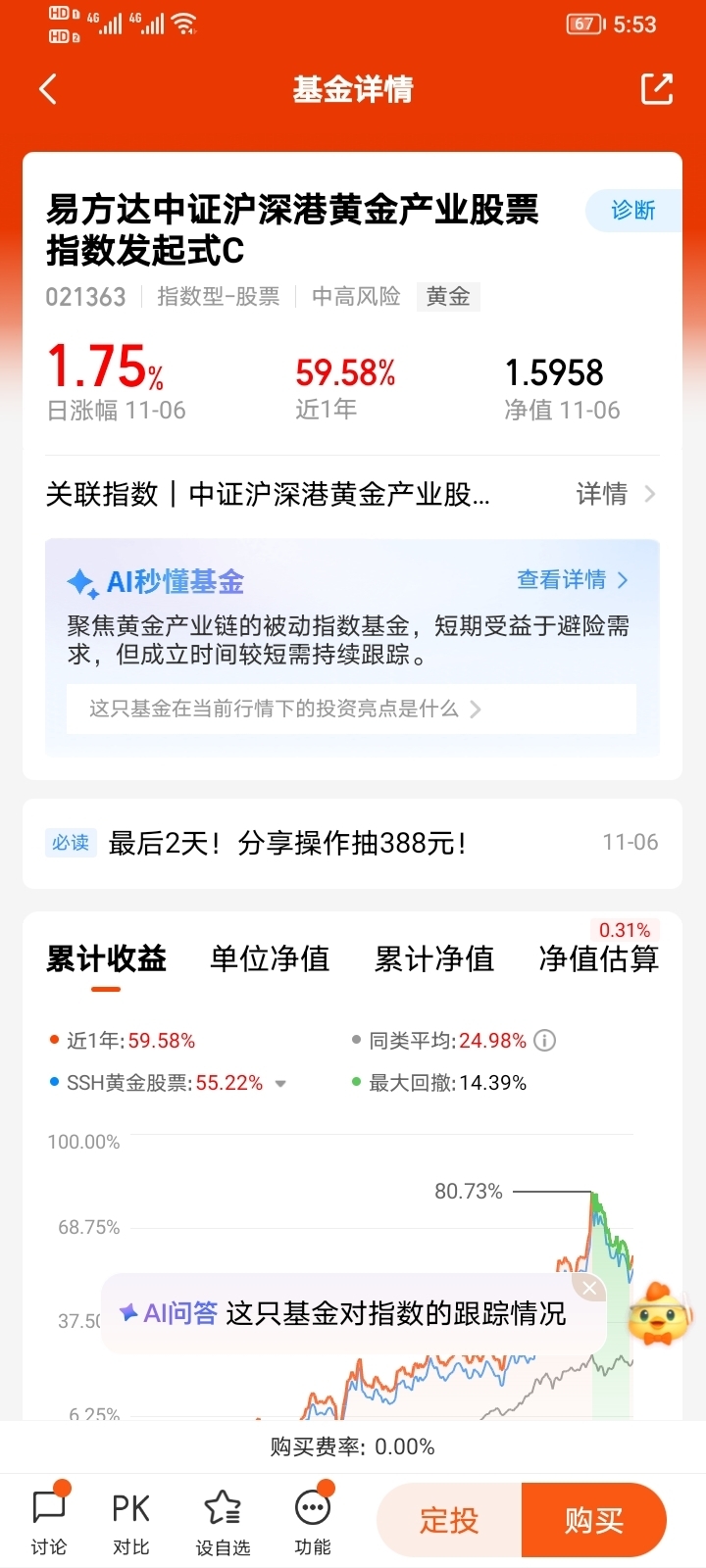 依然关注黄金投资,选择$易方达中证沪深港黄金产业股票指数发起式C$$易方达黄金E