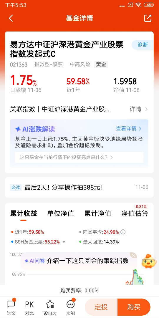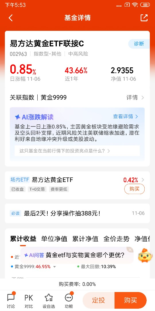 $易方达中证沪深港黄金产业股票指数发起式C$$易方达黄金ETF联接C$紧密布局沪