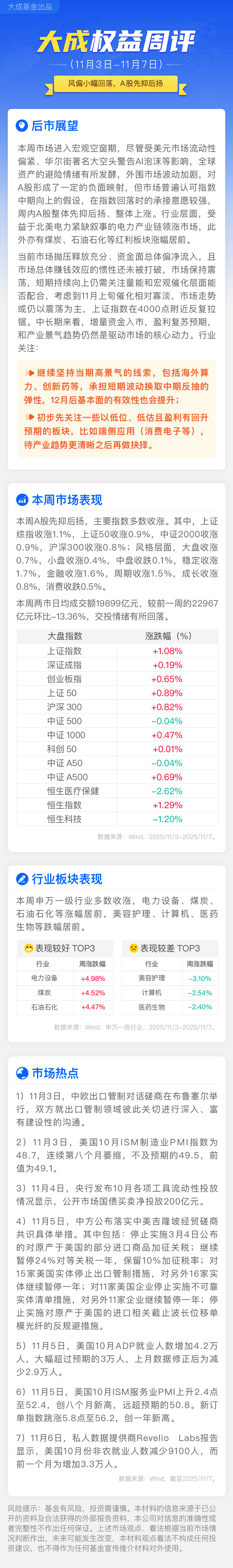 大成权益周评:风偏小幅回落,A股先抑后扬