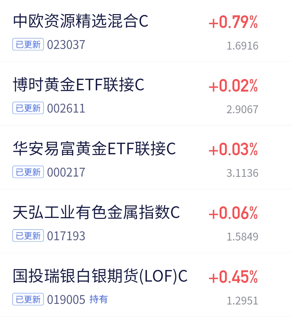 $中欧资源精选混合发起C$ 今天中欧资源精选表现还是不错的。涨幅0.79%,比其他涨势要好很多