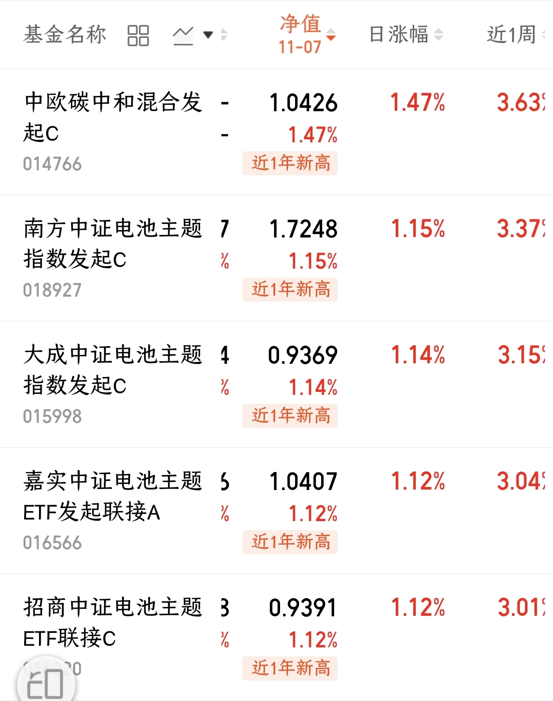 $南方中证电池主题指数发起C(OTCFUND|018927)$今日上涨1.15%